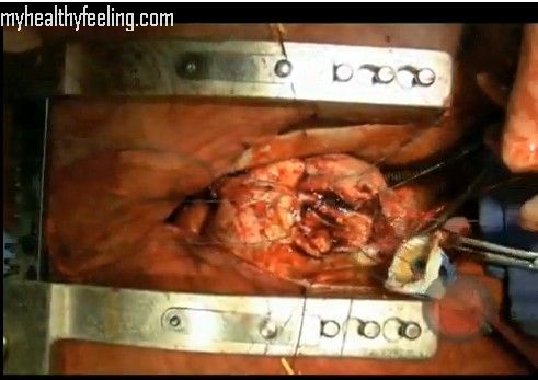 Check out the heart surgery video where the surgeon is operating the mitral valve. The mitral valve, located on the left side of the heart, is the place from where blood comes, from the lungs and is pumped to the various areas of the body. When the valve does not work, the blood goes back into the lung.