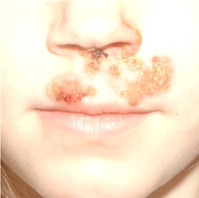 Non-bullous impetigo is the most common type. This type is usually caused by staphylococcus aureus, but even the group A streptococcus bacteria can bring about this type of impetigo. Initially it would look like tiny red dots that look more of less like insect bites. These type of impetigo starts to appear as small blisters and then further develop into pustules; finally the pustules will burst forming damp red patches on the skin. Eventually, yellowish to brown crusts form on these patches. These wounds or lesions are typically found near the nose but may sometimes appear on the arms and legs as well.